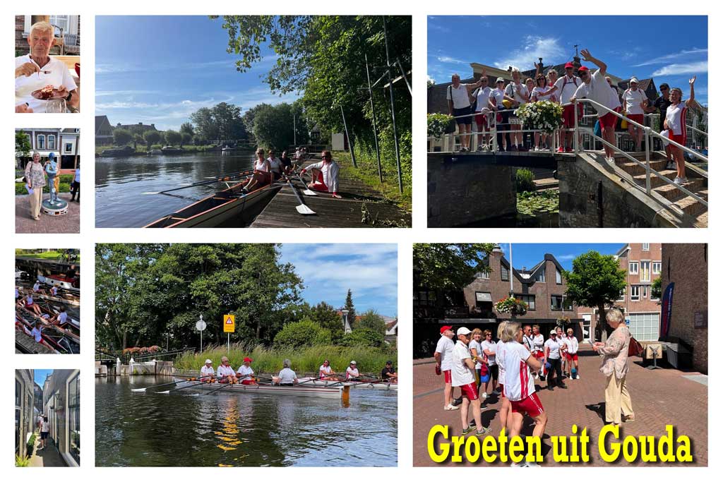 Op 12 juni verzamelde een groepje enthousiastelingen zich voor de Gouda Cultuur roeitocht. Omdat iedereen keurig op tijd was, konden we direct op weg naar het ‘Reeuwijks Verlaat’. Nadat iedereen in het sluisje had kunnen aansluiten, roeiden we verder tot aan de Karnemelksloot. Dat smalle stukje water vereist wat stuurmanskunst. De ene kant slippen, en aan de andere kant halen; terwijl de ‘stuur’ stevig tegenstuurt om de boot netjes door het smalle vaarwater te krijgen. Dat viel nog niet mee.