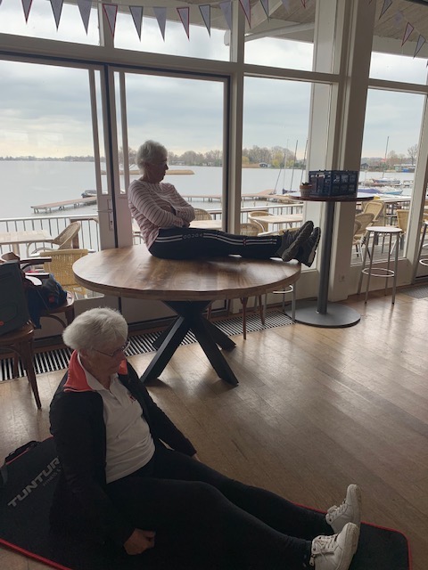Op de foto’s zijn Elly en Rob aan het werk te zien. Elly moest soms op de tafel haar oefeningen voordoen vanwege plaatsgebrek. Rob spreekt voor zich en tot slot een foto van de gezellige lunch.