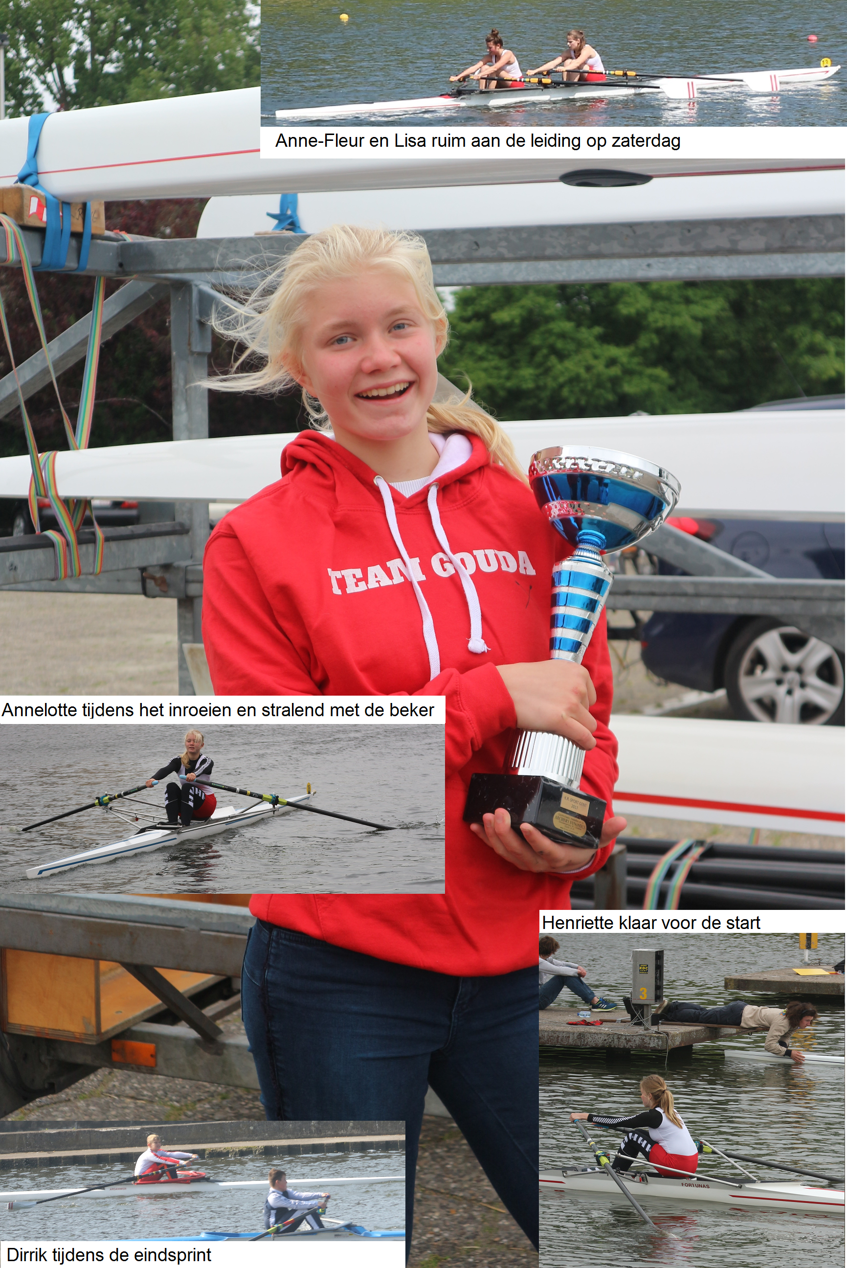 Tijdens de Internationale Mei Regatta op 6 en 7 mei j.l. in Gent, met deelnemers uit Nederland, België, Frankrijk, Duitsland, Engeland, Ierland, Portugal, Cyprus en zelfs Israël, heeft roeiteam Gouda (zie foto) meerdere aansprekende resultaten geboekt. In 3 van de 9 wedstrijden waarin gestart is, werd de directe tegenstand overtuigend verslagen, wat uiteindelijk drie overall podium plekken opleverde. Annelotte Maitland (12 jaar) overklaste de voltallige internationale concurrentie in de skiff voor meisjes tot en met 14 jaar!