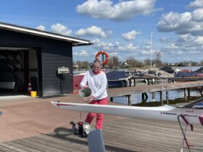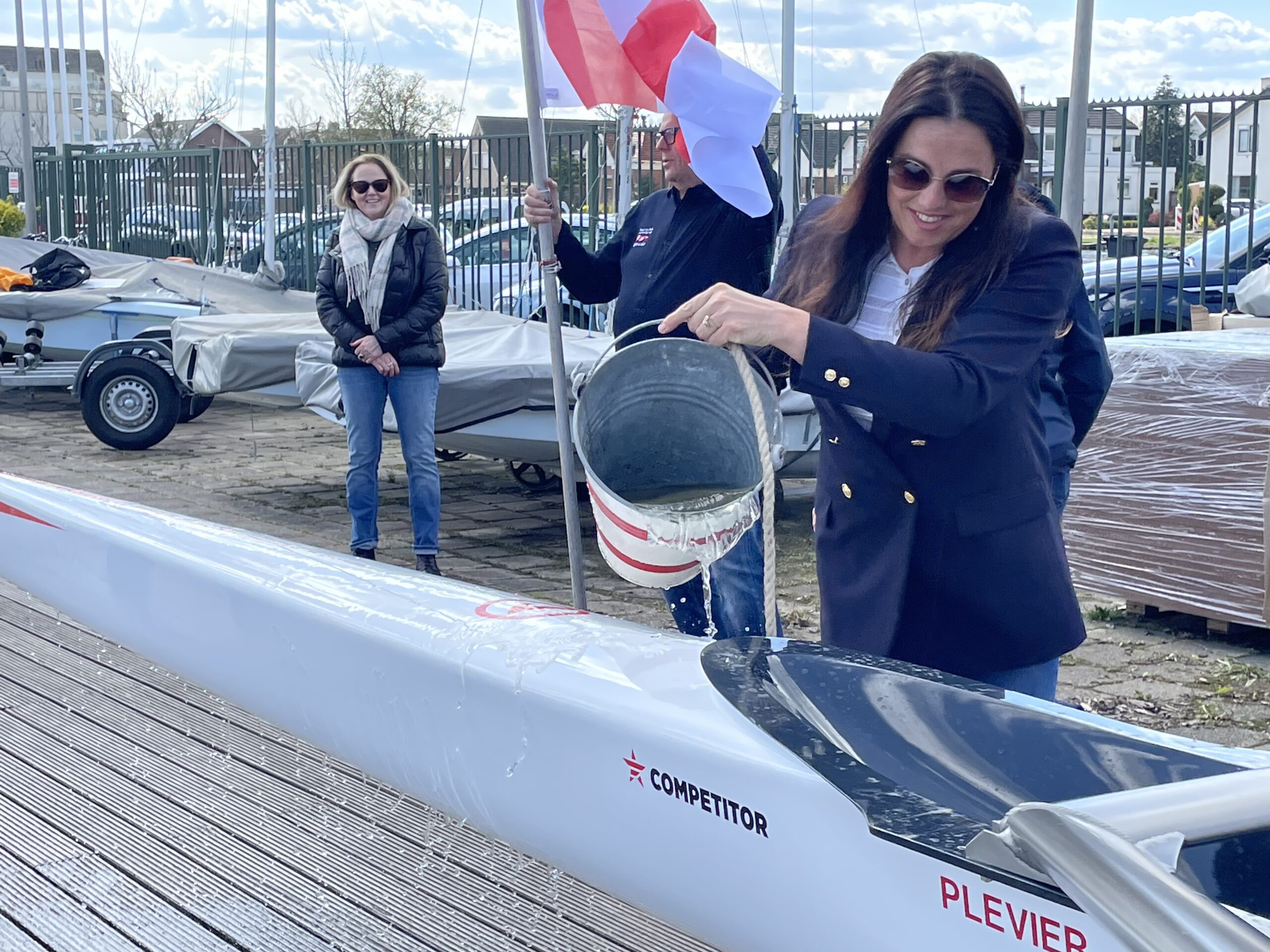 En Anita Vogelezang, composaris van de wedstrijdgroep, wenste de Plevier een behouden vaart. Deze gladde 4 is zowel voor boord- als skullroeien geschikt.
