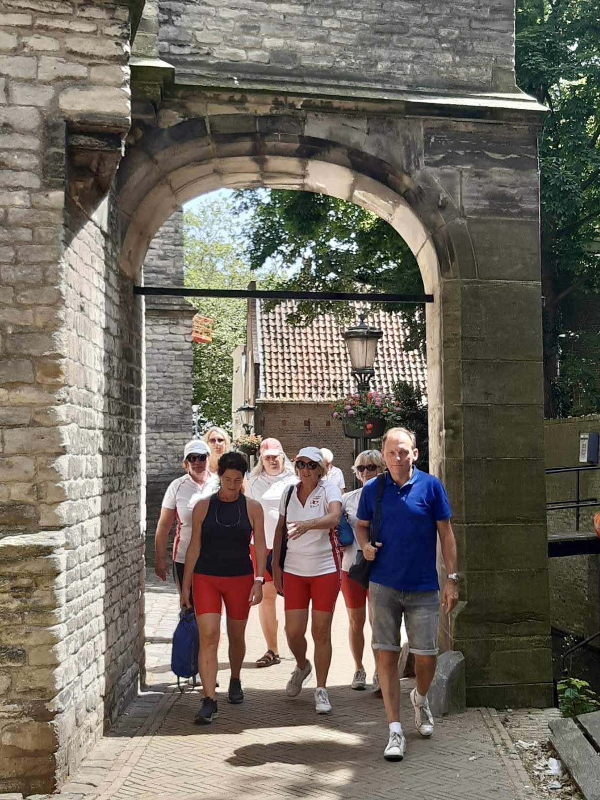 We roeiden vanaf de vereniging via de Reeuwijksche Verlaat sluis naar Gouda en legden aan bij de Museumhaven. Daar nam Peter Bos ons (na een koffiestop) bij 25 plus graden vol enthousiasme mee terug in de tijd langs mooie grachten en diverse panden met een bijzonder verhaal. We doorkruisten het centrum en kwamen in smalle steegjes en straten waar bijna niemand van ons ooit was geweest. (Check ook de 25 steegjeswandeling Gouda). Het was een afwisselend programma dat, nadat we weer terug geroeid waren, op de vereniging werd afgesloten met een drankje.