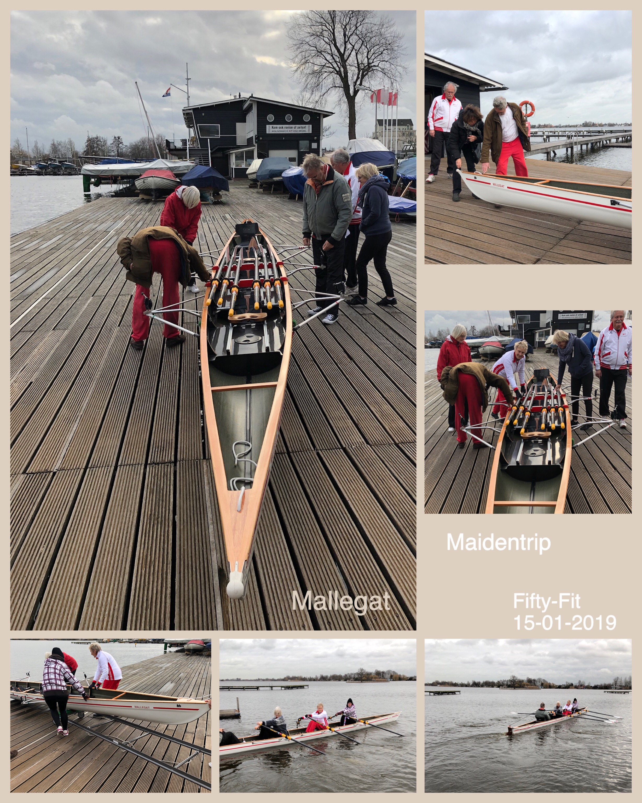 In de sociëteit van de Roei- en Zeilvereniging wordt op dinsdagmiddag vanaf 14.30 u begonnen met een warming-up van ruim een half uur. Vervolgens minimaal een half uur op de ergometer, of als het weer het toelaat, de boten in (C-boten). Zo is op 15 januari j.l. met de fifty-fitters de maiden trip met de Mallegat (nieuwe C3+) gemaakt. Zie de foto’s.