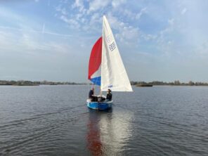 Zondag 30 oktober zouden de jaarlijkse wedstrijden om het ‘Goud van Gouda’ worden gevaren. Team RZVG had zich goed voorbereid. Na een kort college van Geert Geelkerken met veel tactische tips zijn de 2 RS Feva teams: Nando en Chris en ook Noor en Mara de boten klaar gaan maken met de nog weinig gebruikte wedstrijdzeilen goed getrimd aan de mast. Ook 2 Randmeer teams met Jet, Willem en Ruud in de 1001 en Enno met René en Jan Willem hebben op eigen water nog even geoefend en de zeilen getrimd en zijn vol verwachting naar Elfhoeven gevaren, begeleid door Jan en Peter in de motorboten. We hebben gezeild tot de haven van GWV Elfhoeven en toen was de wind op…