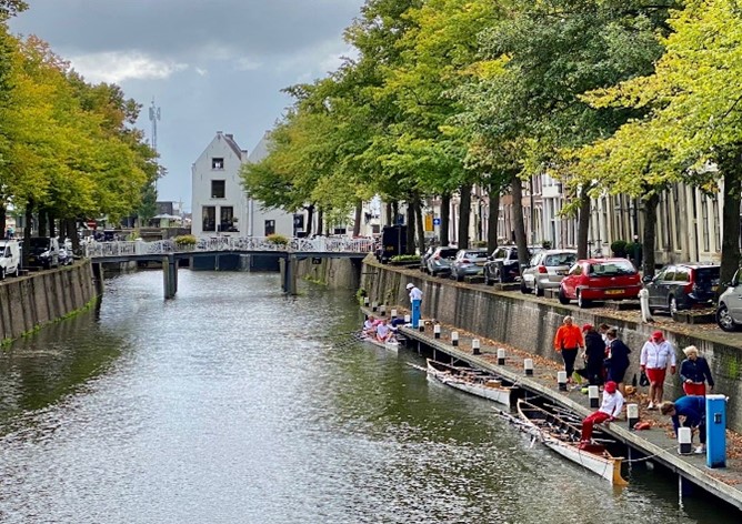 We gaan uiterlijk 09:00 uur vanaf de Roei- en Zeil Vereniging op weg naar Gouda via de ‘Reeuwijks Verlaat’ sluis en veel bruggen naar de Goudse Museumhaven, stoppen daar voor koffie en roeien daarna terug naar het centrum voor een lunch onder de Visbanken.