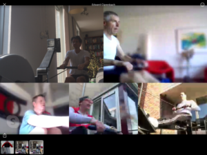 Zoals we eerder op de website hebben gemeld, is de ploeg Les Animaux nog steeds actief aan het trainen. Drie keer per week wordt er via Skype met elkaar geërgometerd of aan core stability training gedaan.