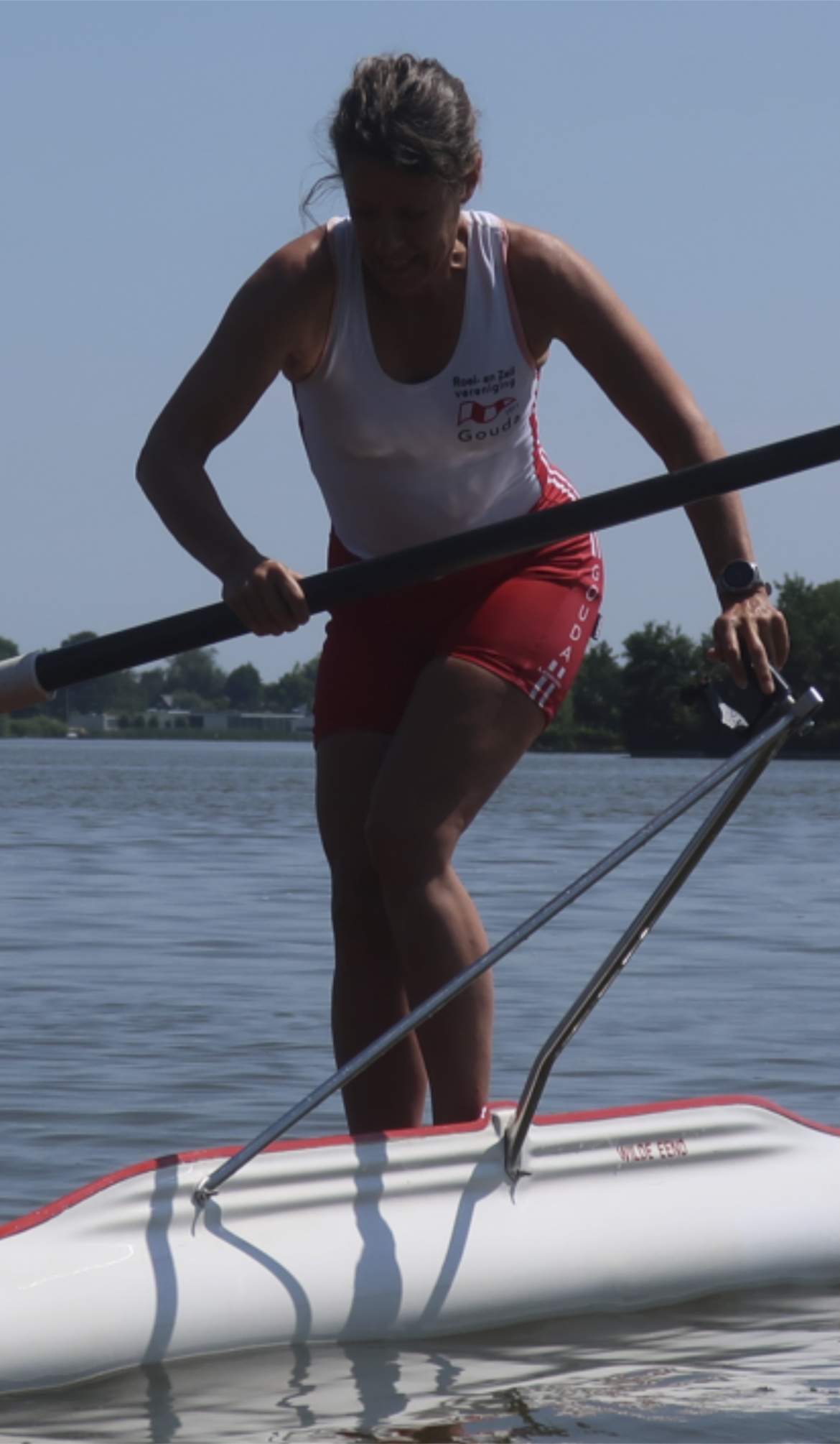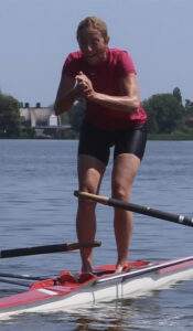 Maar Yvette Engbers is onze kunstenaar op het water; zij heeft de ultieme combinatie gemaakt tussen roeien en suppen. Staand in de skiff haar riem uit de dol halen, dan suppen met één riem daarna de riem weer terug in de dol om weer verder te skiffen. En dat alles zonder om te slaan! Gelukkig hebben we de foto’s. Wie volgt 😉