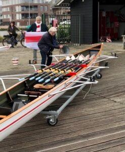 Els is al jaren begaan met onze roei-jeugd en is een zeer ervaren jeugdinstructeur. Door haar werd de nieuwe skiff ‘Bendoe’ gedoopt met een emmertje water uit de Breevaart waar deze skiff regelmatig zal varen. Deze jeugdskiff is geschikt voor < 60 kg en een skiff2 diploma is vereist om deze te kunnen afschrijven.