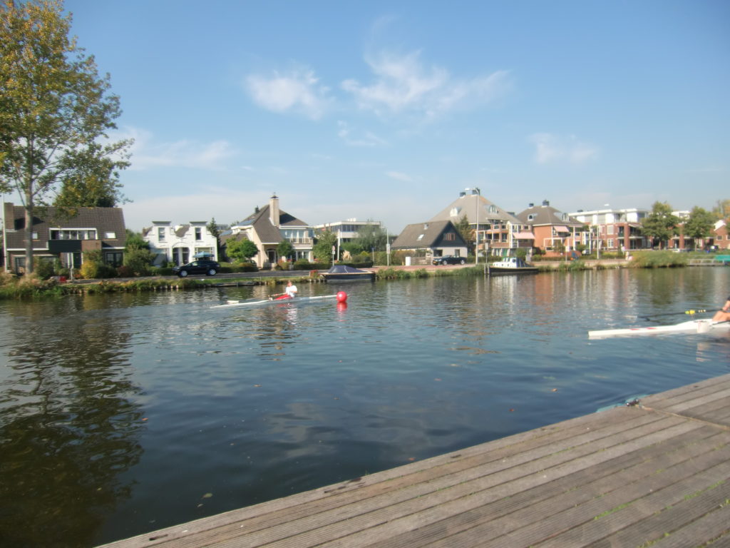 Natuurlijk, er waren af en toe ‘gaat dit goed komen?’ en ‘ik houd mijn adem in!’ momenten. Bijvoorbeeld toen één van onze roeiers van de zenuwen achterstevoren in de boot wilde stappen en verbaasd naar de voetenbank keek, zich langzaam realiserend dat je daar echt niet op kan zitten…. O ja, andersom!! Of toen een andere roeier prachtig slippend door het midden van het poortje roeide, waarbij één riem toch even bleef steken, en hij daardoor de riem moest loslaten. Even was er wat verbazing in de ogen. Aan de wal hield iedereen de adem in… gaat de boot om? Maar nee, geen enkele paniek, geheel in controle werd de riem weer opgevist en werd er rustig verder geroeid. Uit ervaring kan ik zeggen dat het menig volwassen skiffeur niet gelukt zou zijn om zo ‘cool’ te blijven!