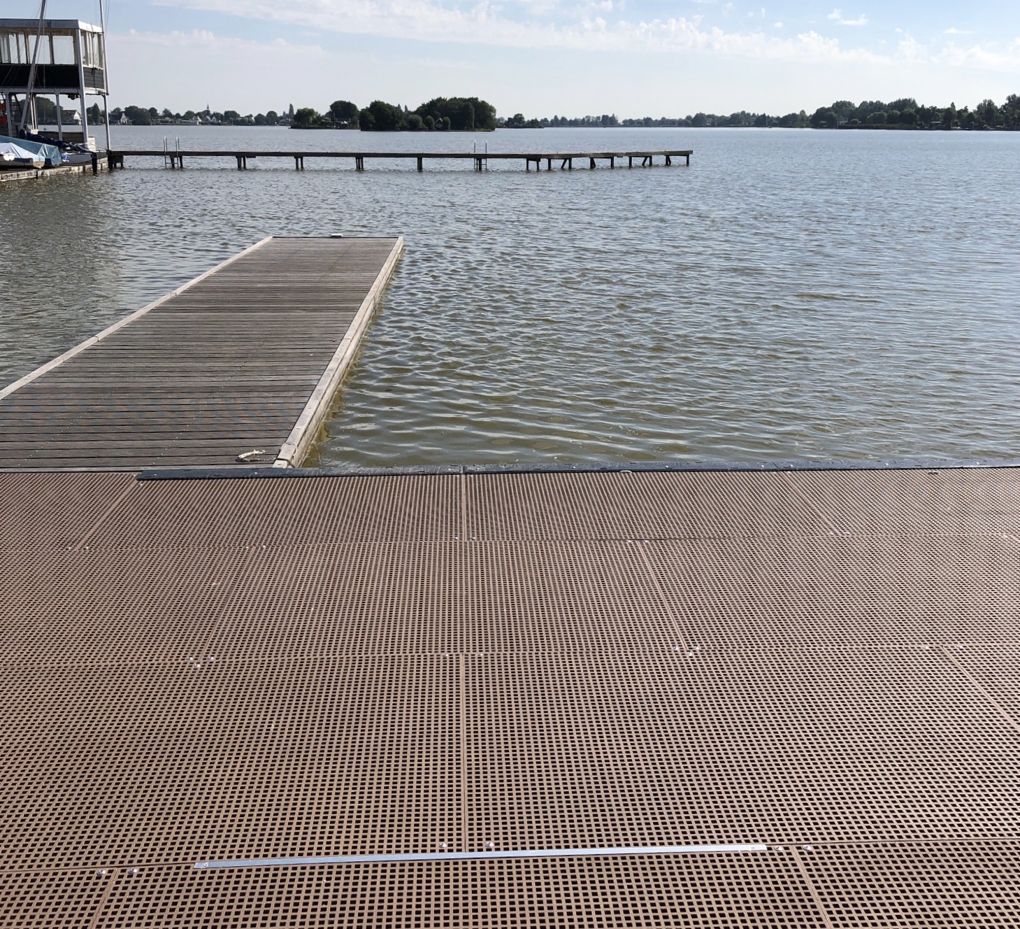 Onze klussenploeg heeft op de mooie nieuwe steigers strips aangebracht die helpen met het correct in het water brengen en uit het water halen van de recreatieroeiboten.