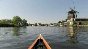 Na de sluis een smal deel van de route. Hier dus vooral ‘light paddle’ en ‘slippen aan bakboord’. Op de Loosdrechtse Plassen honderden motorboten, zeilboten, feestboten, etc. Wij steken zo recht mogelijk over, even lekker knallen, en vervolgens in kolonne tot aan derde sluis. Daar worden weer nieuwe flesjes water naar ons gegooid (blauwe plek viel mee 😉). Het laatste stuk voluit en we leggen moe, wat stijf en zeer voldaan aan bij Tromp.