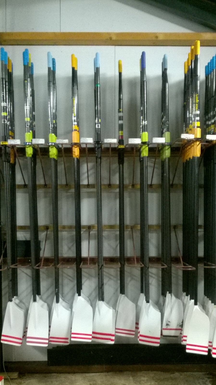 Om het uitbrengen van riemen te vergemakkelijken en de kans op schade door vallende riemen te verkleinen, graag in het vervolg de riemen zodanig in de rekken ophangen dat de bladen allemaal naar rechts wijzen.
