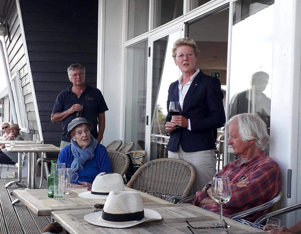 Tijdens de borrel verwoordde Ineke Verkaaik het belang van het behoud van deze prachtige zeilende roeiboten en ze omarmde het initiatief om hier in de toekomst meer mee te gaan doen en inhoud aan te geven.