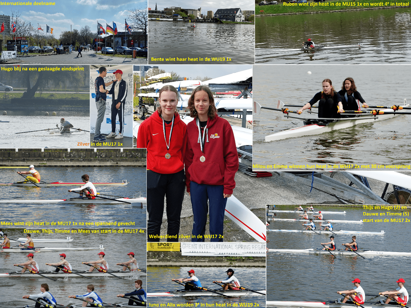 De junioren wedstrijdroeiers van Gouda hebben afgelopen Paasweekend bij de International Spring Regatta in Gent (België) maar liefst 5 zilveren medailles behaald. Met tegenstanders uit België, Duitsland, Frankrijk, Groot Brittannië, Nederland, Noorwegen, Gibraltar en zelfs uit China is in verschillende samenstellingen deelgenomen aan 19 wedstrijden.